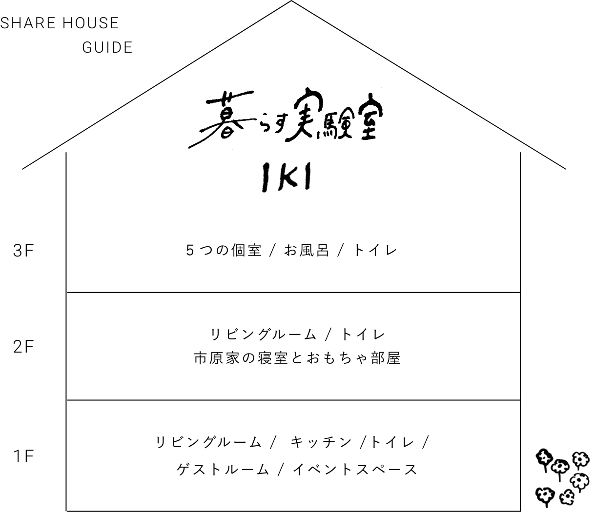 リビングルーム / キッチン /トイレ / ゲストルーム / イベントスペース
