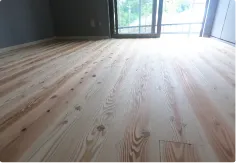大分県津久見市の天然素材でできた漆喰の壁に、床はうづくり仕上げの日田杉を使っていて、居心地がいい空間です。