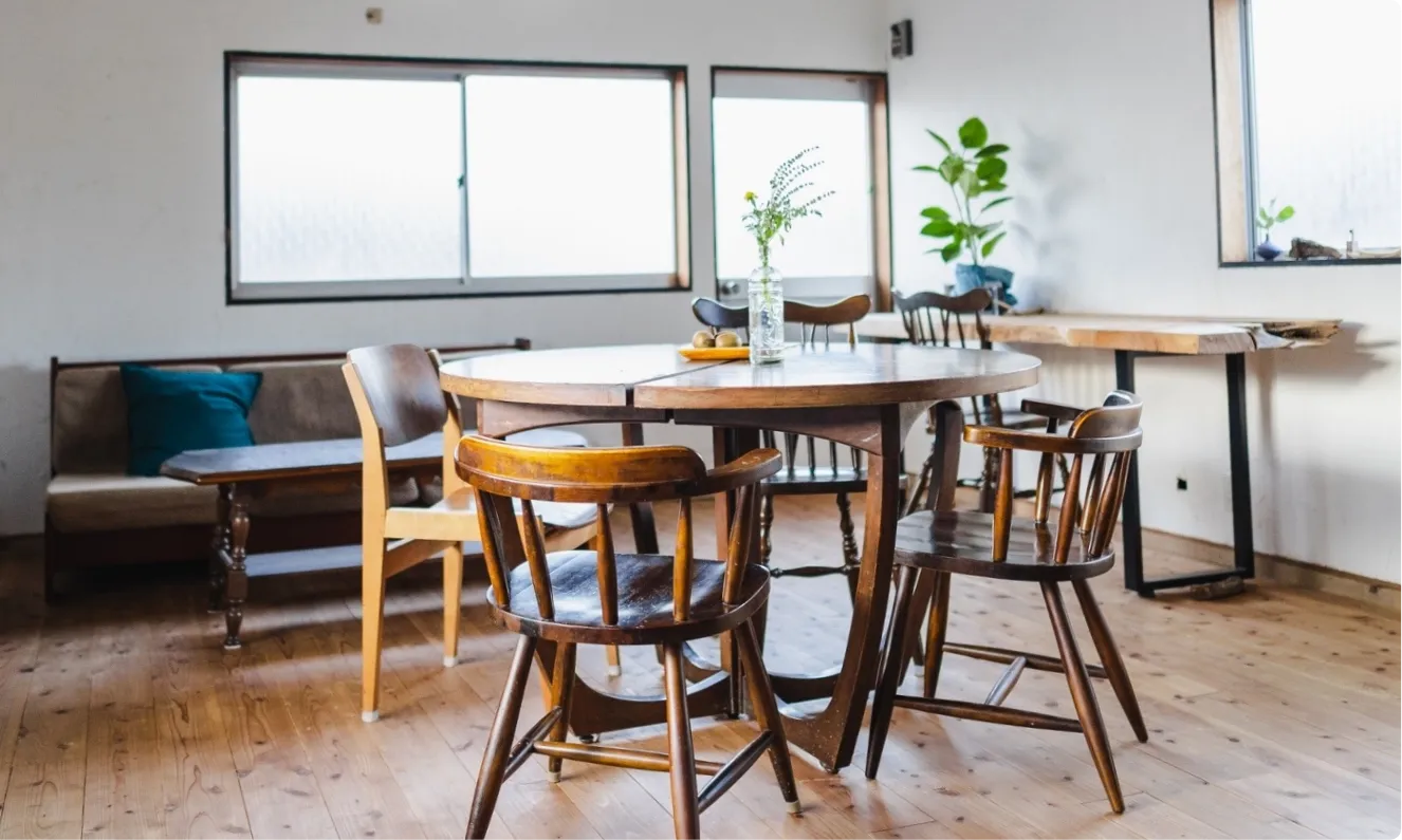空間づくりで私たちがこだわったものの1つに「距離感」があります。同じ空間に複数の人がいながら、思い思いの過ごし方をするためには距離感が調整できることが大事。テーブル、椅子をいくつも配置しました。同じ空間にありながらも、それぞれが別々のこともできる。ともに過ごすが、心地良い空間を目指してみました。
