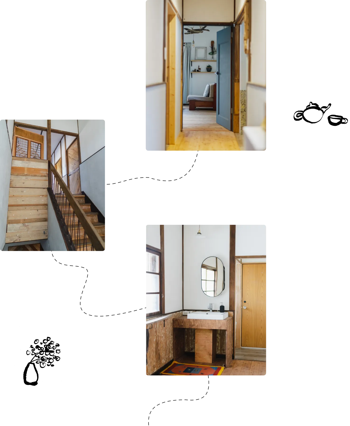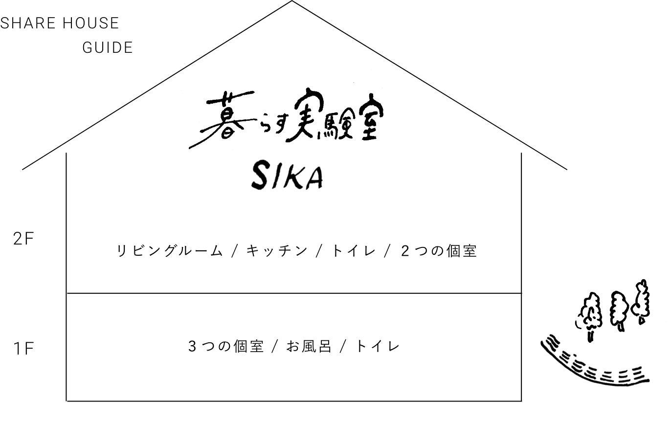 私たちにとっての2つ目のシェアハウス。元歯医者さんの診療所と住まいだった建物を、1年半かけてセルフリノベーションし、2022年末にオープンしました。1つ目のシェアハウスIKIが「多くの出会いで自分の可能性を広げる場所」だとしたら、SIKAは「自分にかえる場所」をテーマに空間設計しました。