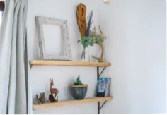 手作りの収納棚は大きく、飾る収納にチャレンジしたくなりますね。白とブルーのテーマカラーに、無垢の床。ゆったりできる空間になるよう願いを込めて「やすまる部屋」と名付けました。